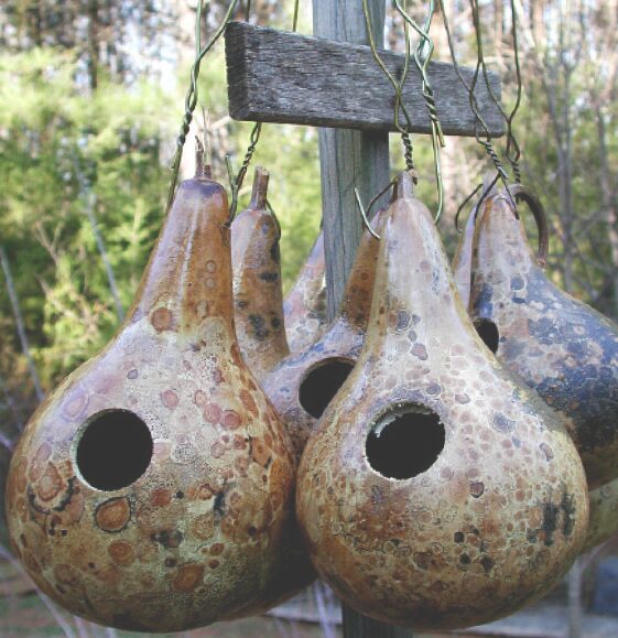 I have loved these since I was a very little girl. We had family friends living in the Ozarks, on a little farm in the mountains, and gourds were hung everywhere, with birds flitting in and out feeding their young, and they were used as dippers at their well, and for many other uses. Wonderful project to do with children, as they will love painting them and hanging them in their own trees. Because of a little accident with both varieties jumping into each others bags, and co-mingling (lets say) we are (now) offering them as a combination. It is fun to have both varieties.