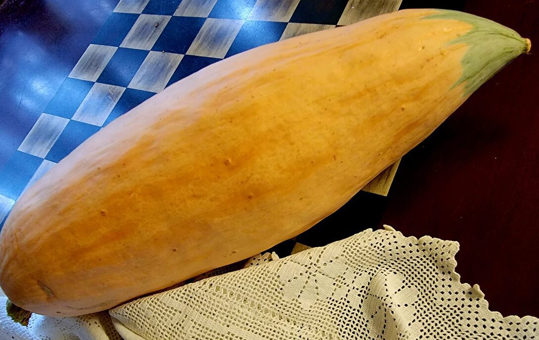 Cucurbita maxima, a rare banana-shaped, sweet and dense Appalachian heirloom winter squash. It was bred by the Cherokee Nation in the early 1800’s. It is a rare variety and wonderful. The Cherokee of North Georgia, Southern Tennessee and Southwestern North Carolina developed this variety of ‘sweet squash’. Due to the “Trail of Tears” tragedy the squash was made less and less known making it a rare variety but one well worth trying. It is also called North Georgia Candy Roaster squash.